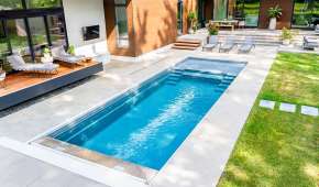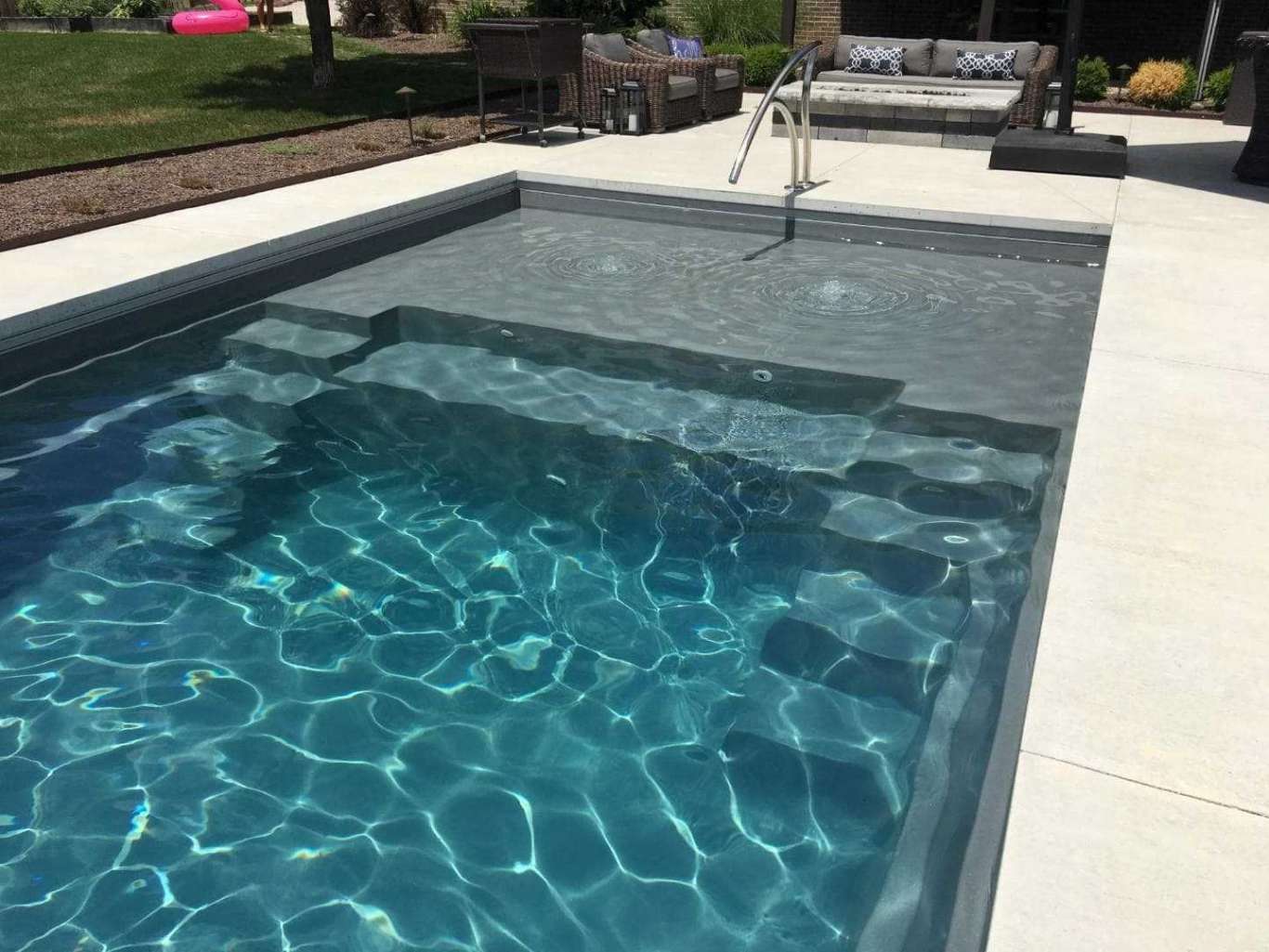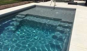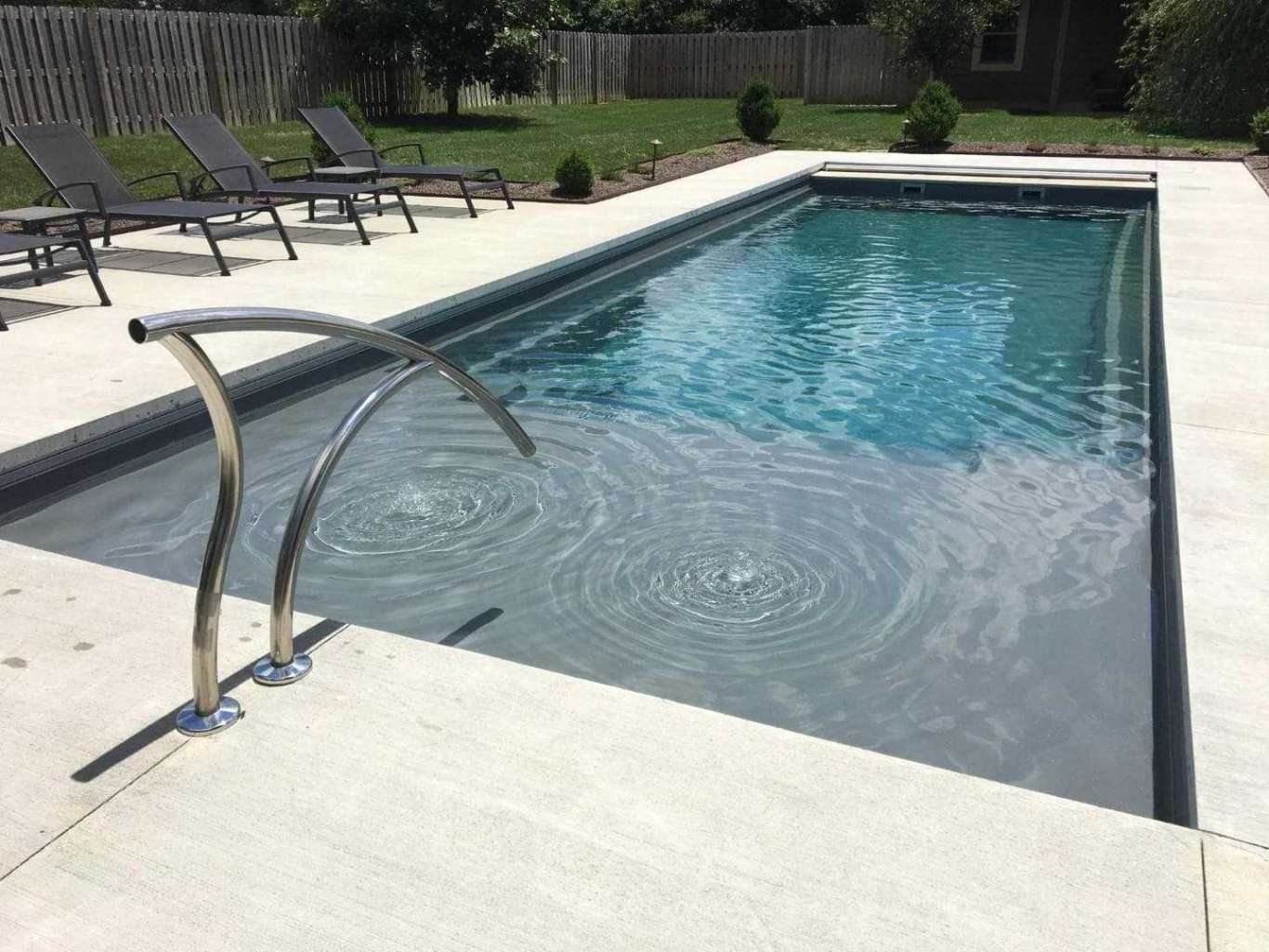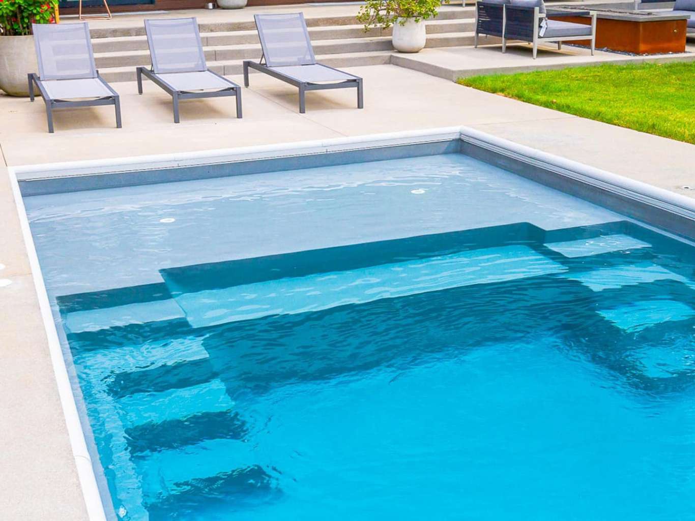 Convenient entry and exit steps allow access from both sides of the pool