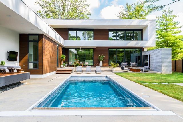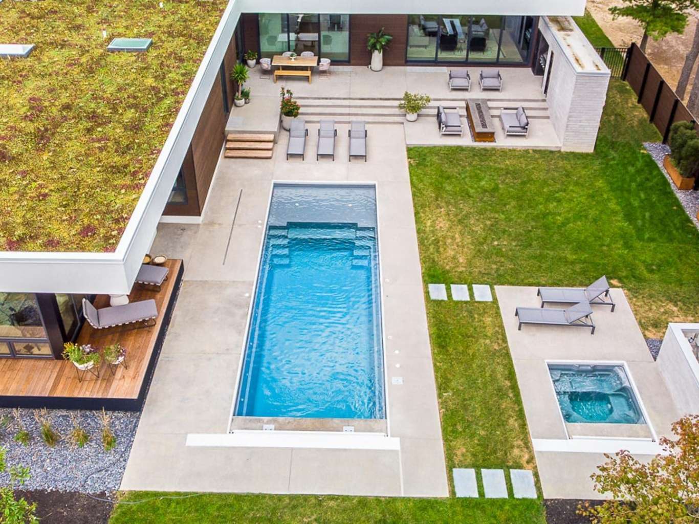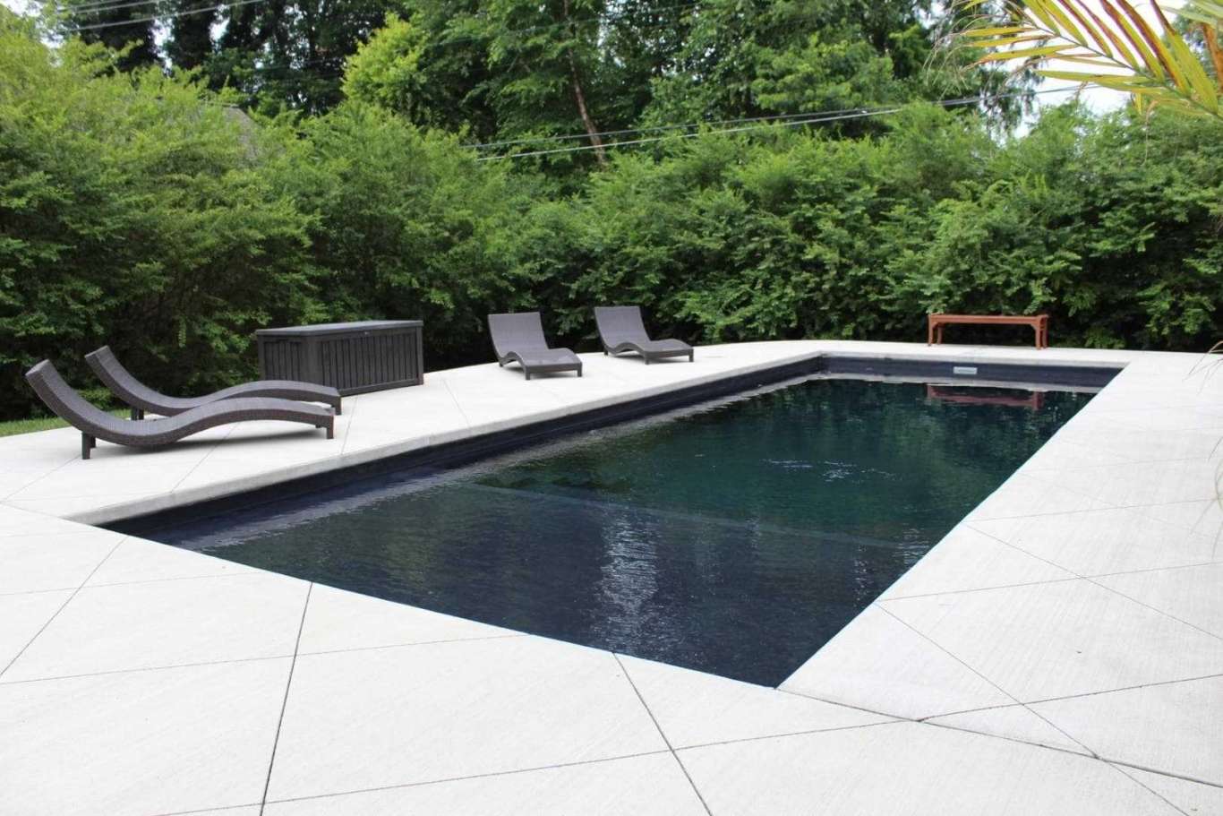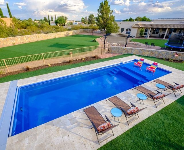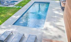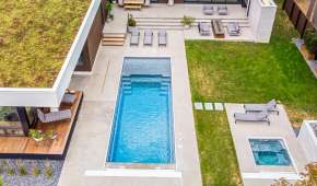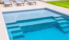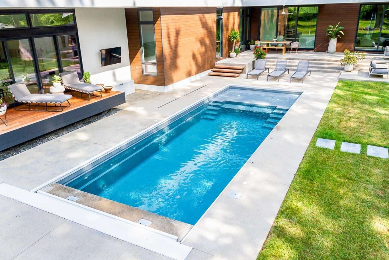 Convenient entry and exit steps allow access from both sides of the pool