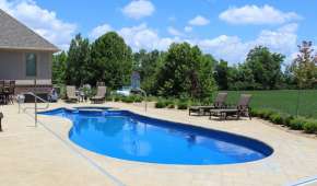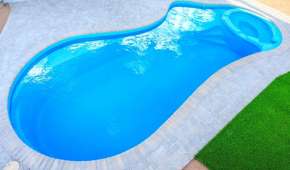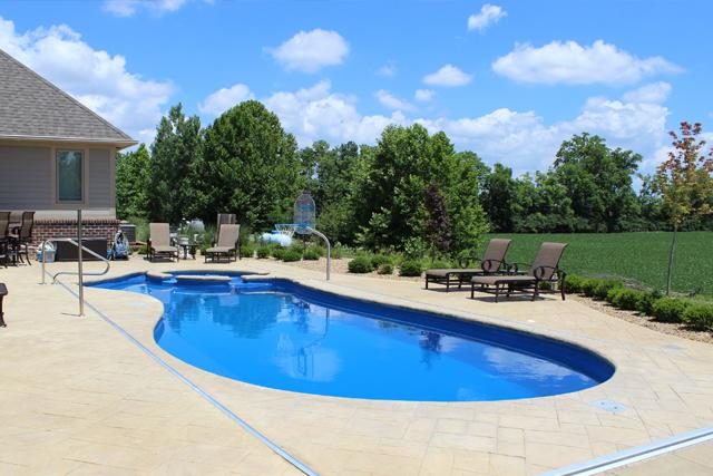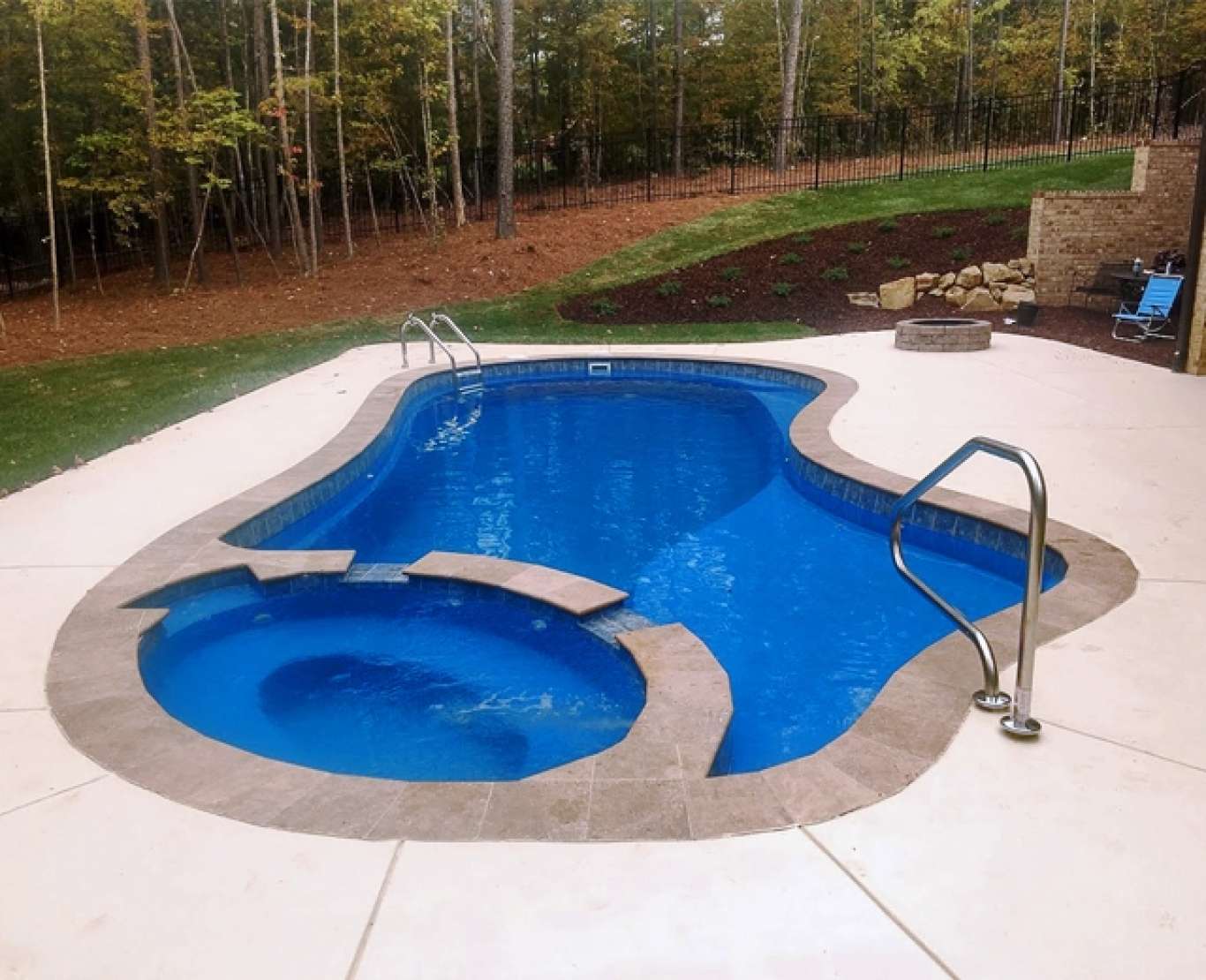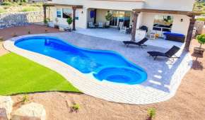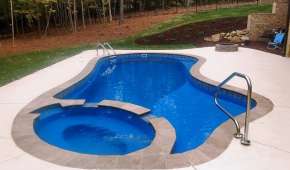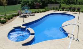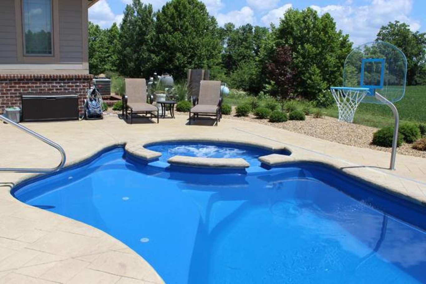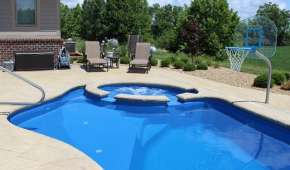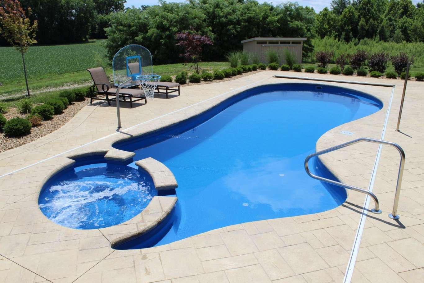 Built-in spa located at the shallow end next to entry steps and fun pad.